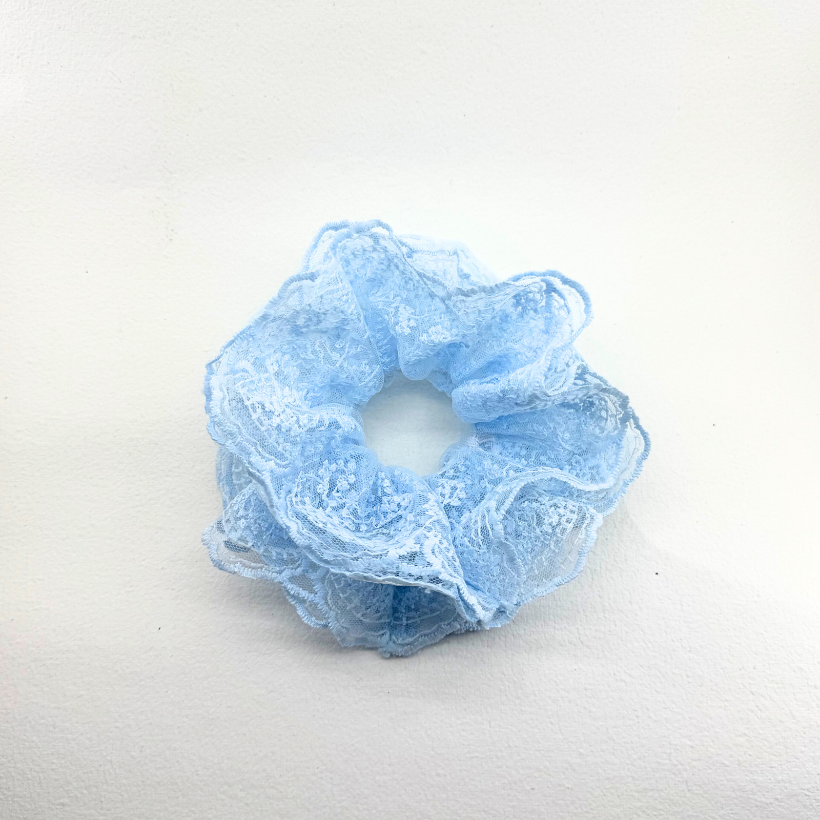 Elevate your hairstyle with this pastel blue lace puff scrunchie. Designed to be soft and stretchy, it holds hair securely without tugging or breakage. Its delicate lace texture adds a charming, feminine touch, making it perfect for daily wear or special occasions.